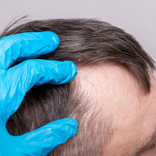 As the follicles shrink, hair grows increasingly shorter and finer until no new hair starts to grow. Male pattern baldness is often seen with a receding hairline on the forehead or the area around the crown starts thinning initially (the “bald spot”). This is because the follicles on the top and crown of the head tend to contain DHT-sensitive follicles.
